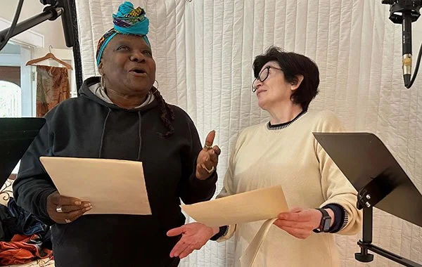 Fanni Green and Dora Arreola recording We’re Reading Everywhere!